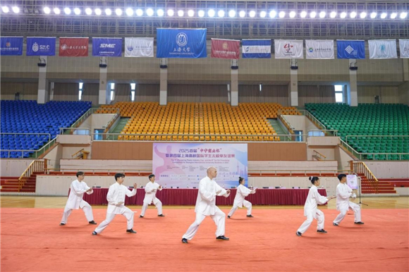 6月7日,伴随着热烈的传统狮子舞、中国古典舞《西子湖·初妆》和武术表演“太极神韵”,2025首届“中宁塑业杯”暨第四届上海高校国际学生太极拳友谊赛在上海大学宝山校区体育馆里拉开帷幕。来自上海、江苏、安徽等地的16所高校的50个国家160余名国际学生选手、各高校领队、观摩学生、嘉宾等近300人参加了这场比赛。