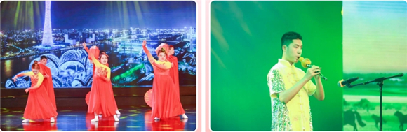 《少女唐俑》女孩们可爱俏皮的古典舞姿,每个pose都在展现最美的自己,孩子们在包容的天地中找到自信,在大胆的尝试中收获喜悦;在融合伙伴的助力下,男生独唱《如愿》,唱出了“我能行”的坚定信念,让每个音符都成为自我成长的见证;非洲鼓《祖国的花朵》演绎中,孩子们用双手敲击着生命的律动,展现着艺术疗愈赋予的蓬勃能量,让差异成为特长,让不同化作和谐;团体街舞《奔跑的青春》舞动着无限活力,诠释着从“我参与”到“我闪耀”的蜕变历程和孩子们独有的青春宣言;而压轴的《鼓跃华章》则以舞动的龙影与震天的鼓声将整场演出推向最高潮,擂响了特殊教育面向未来的希望强音!