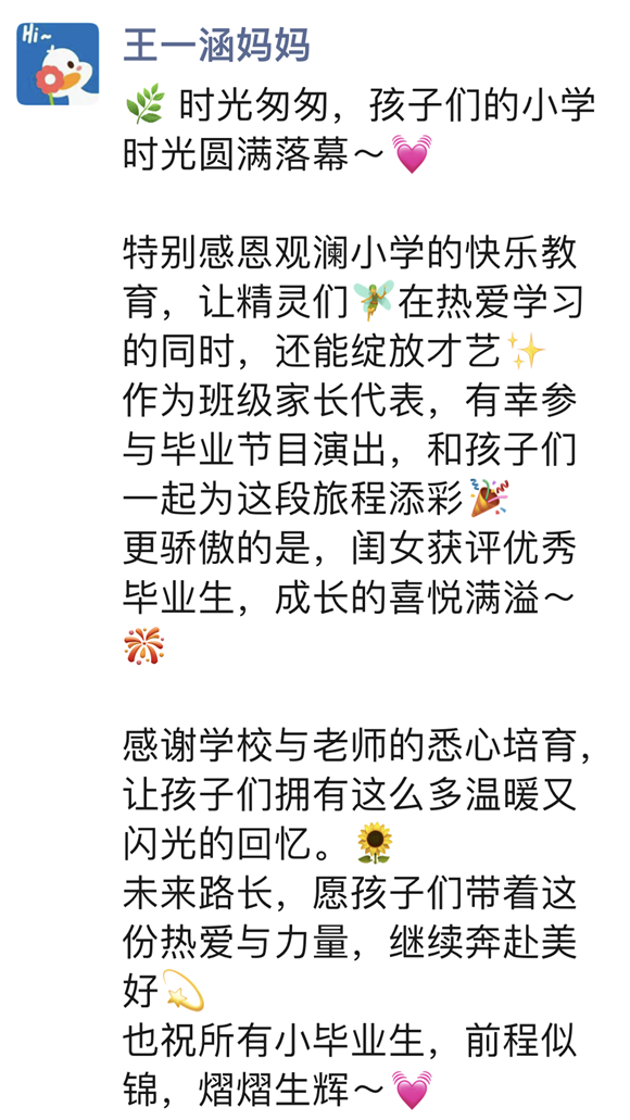 莘莘学子意,浓浓观澜情。"澜"少年们自信飞扬,茁壮成长,这是母校一生的荣耀。师长的一声声叮咛,一句句嘱托,都化作清风拂过心窝,愿每个从观澜出发的孩子,都能带着母校的爱去往更辽阔的地方,活成自己的光!