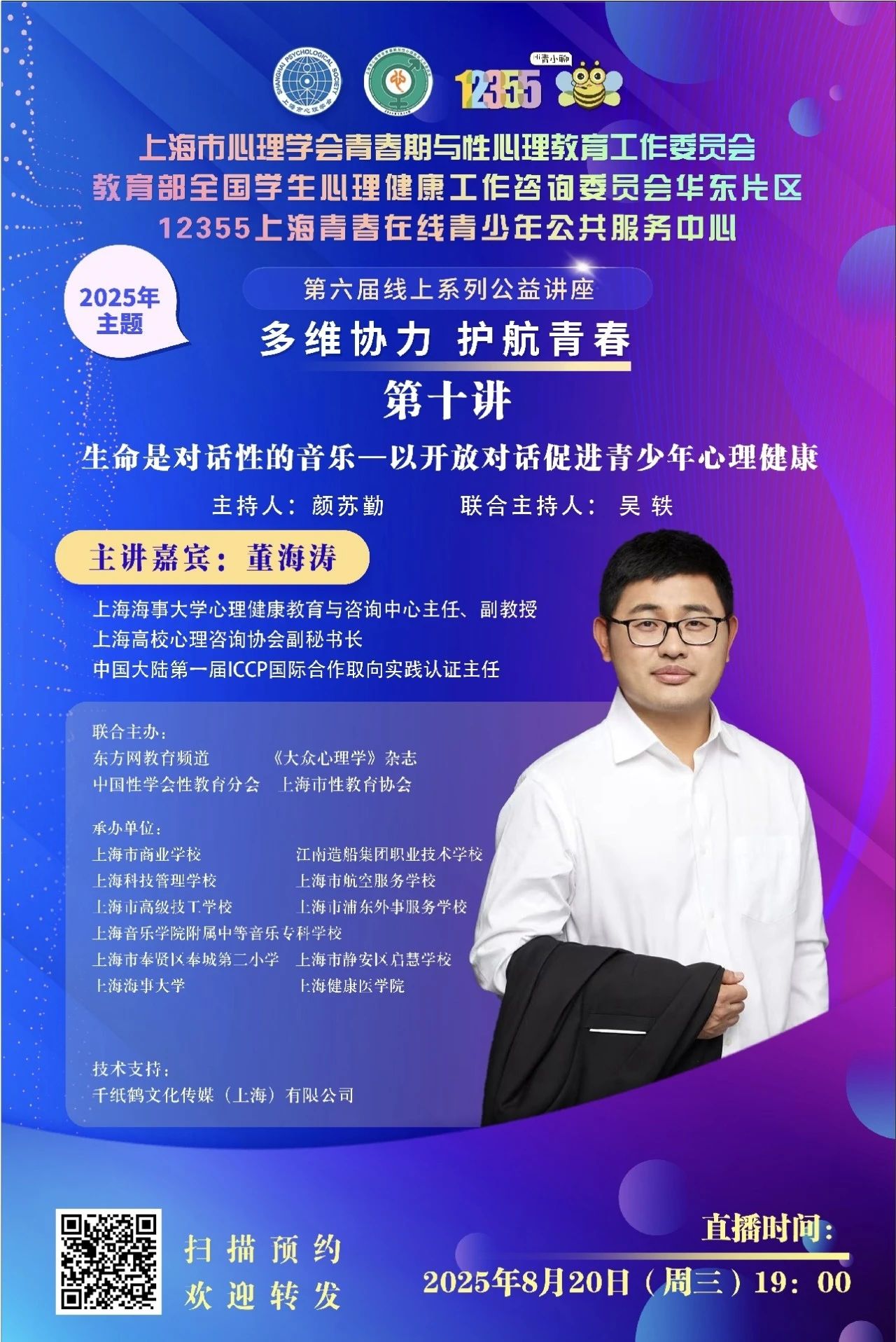 欢迎扫描海报二维码,预约观看"多维协力护航青春"线上系列公益讲座。