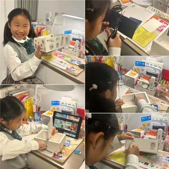 在"整理收纳妙趣多"这一主题中,笋芽们课堂上通过故事、动画学习了整理收纳知识,借助AI工具探索技巧,开展整理书包比赛,学会了整理图书角并制作借阅公约,亲手实践完成打平结、蝴蝶结等绳结等。