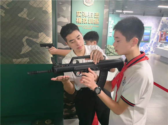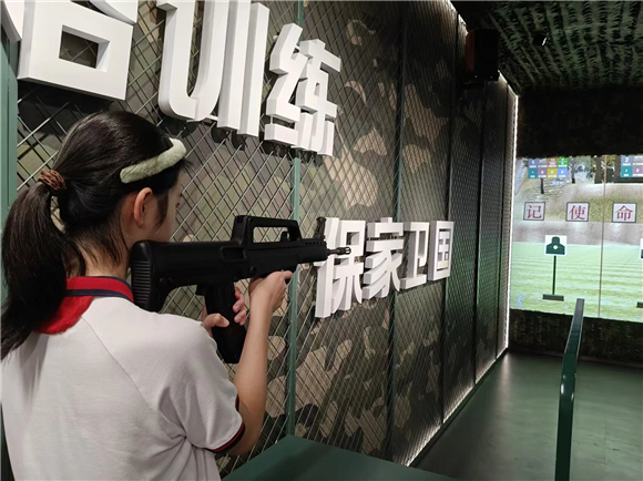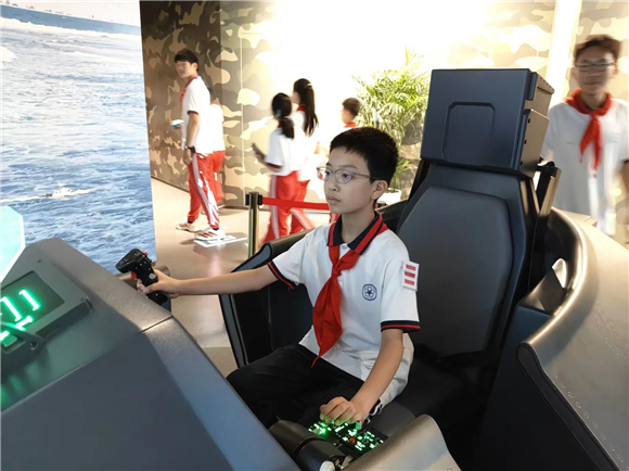 活动特别设置"戎耀训练营"实践环节。在"挑战枪王"模拟射击区,团员们体验到"百发百中"的成就感,更深刻感受到"精准射击"背后所需的专注与责任;在"逐梦海空"飞行模拟舱,队员们化身"飞行员",操纵战机完成起降、巡航等任务,直呼"震撼"的同时,更体会到"强国强军"的使命担当。