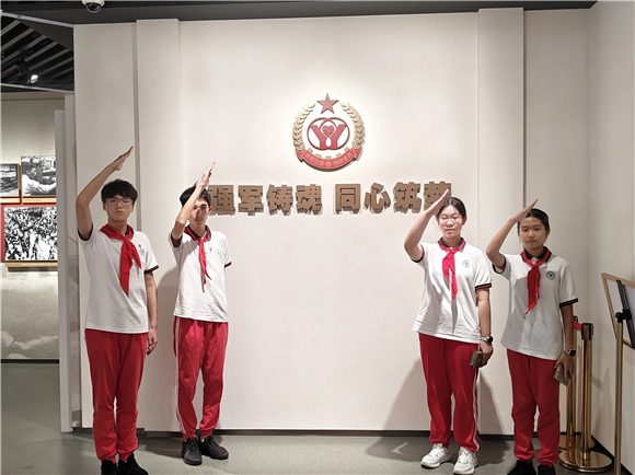 活动最后,全体师生在展厅前庄严宣誓:"请党放心,强国有我!我们将以实际行动传承双拥精神,为建设强大国防贡献青春力量!"嘹亮的誓言在展厅内回荡,表达了建实学子对祖国的无限热爱和对国防事业的坚定承诺。