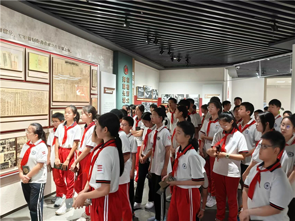 在9月3日阅兵日即将到来之际,为深化青少年爱国主义教育、国防教育、弘扬双拥优良传统,上海市建平实验中学团委精心策划"青春逢盛世·双拥筑国防"主题团队日活动。枣庄、金川校区50余名团员、队员走进上海双拥工作展览馆,通过"历史场景重现+互动实践体验+校馆协同育人"三位一体模式,让爱国主义精神与双拥情怀在青春血脉中赓续传承。