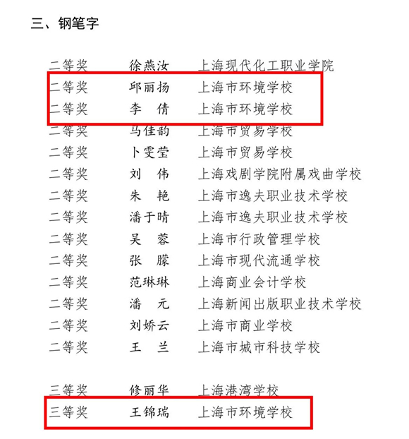 经专家评审,李倩、邱丽扬老师分获中职组钢笔字二等奖,刘思涵老师获中职组书法三等奖,王锦瑞老师获中职组钢笔字三等奖。