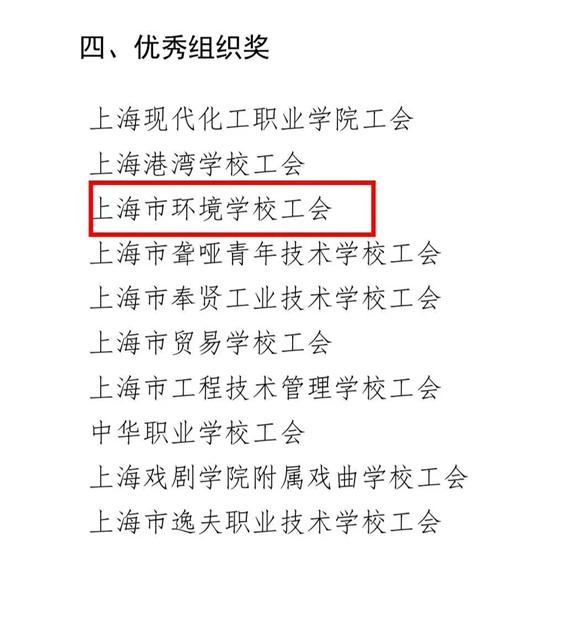 10月26日,由中国教育工会上海市中职校工作联合委员会主办的2025年上海市中职校教师书法·板书·钢笔字大赛暨第十届上海市教师书法·板书·钢笔字大赛选拔赛在上海市工商外国语学校顺利举行。上海市环境学校刘思涵、李倩、邱丽扬和王锦瑞四位老师代表学校参赛,并斩获多项荣誉。学校工会荣获大赛"优秀组织奖"。
