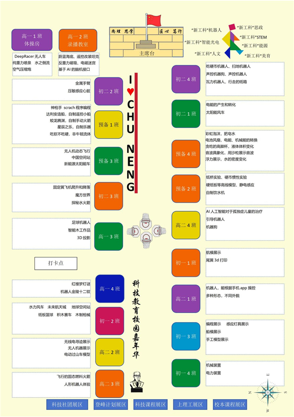 全体师生与嘉宾走进科技教育校园嘉年华展区。嘉年华以"新工科+"为主线,设置新能源、智能光电、机器人、STEM、人文、体育、美育等七大主题片区。