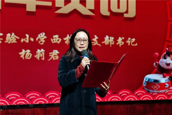 汇演伊始,学校党支部书记杨老师与副校长徐老师分别在两校区为全体师生送上了饱含期许的新年祝福。他们寄语同学们,在2026年要如骏马般昂扬向上,在"五育并举"的滋养下全面成长,逐梦前行。温暖的话语浸润人心,让现场与屏幕前的每一位同学都感受到了师长的关怀与期盼,也为整场汇演奠定了温馨奋进的基调。
