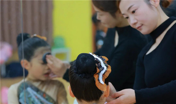 活动的顺利开展,离不开家长志愿者们的鼎力支持与无私奉献。文艺汇演开始前,不少家长志愿者早早来到学校,细心地为小演员们化妆、整理服装,用专业的手法为孩子们打造最美的舞台形象。