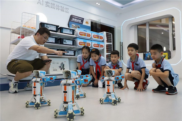 多年来,徐汇区持续构建“STEM+”课程体系,实现从幼儿园到高中阶段全学段全覆盖。从2014年到2023年的10年间,区内中小学已有5万人次参加了STEM课程项目,以科学、技术、工程、数学为主线,让学生开展与真实世界关联的学习活动,以合作方式完成头脑风暴、创意设计、动手制作、模型测试、设计改进、展示汇报等,提升学生科学探究、工程设计、交流合作等综合能力。作为全国中小学科学教育实验区,目前徐汇区内中小学已相继开发科学类校本项目1500余个,已建成科学创新实验室192个,区域全部86所基础教育阶段学校完成了校外“科学副校长”的聘任。去年,联合国教科文组织一类中心国际STEM教育研究所落户徐汇滨江。在“双减”背景下,徐汇区将STEM课程作为课外服务时段的个性化课程供学生选择,满足学生和家长对学校“既夯实基础又培养能力”的新期待。