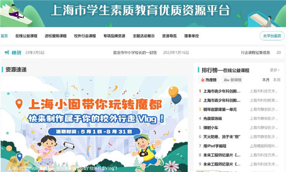 上海积极整合各类校外教育服务资源,建设上海市学生素质教育优质资源平台。