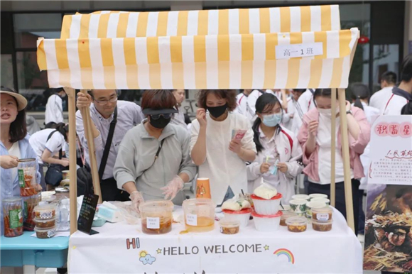 除了特色美食,各班美食摊位还设置了诸多创意环节,比如知识问答、幸运抽奖、挑战赛等等,为美食节增添趣味与创艺。