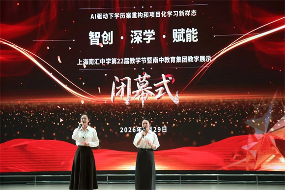 2026年1月29日,以“智创·深学·赋能:AI驱动下学历案重构与项目化学习新样态”为主题的上海南汇中学第22届教学节正式落下帷幕。全体教师齐聚汇美剧场,参与教学节闭幕式。本场活动由杨怡雯、宋家莹老师主持。