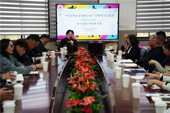2026年3月31日下午,进才实验小学教育集团“综合体育活动两小时”专题研讨交流会在进才实验小学联洋校区三楼会议室顺利举行。会议由进才实验小学教导主任陆晓红老师主持,来自集团各成员校的体育分管领导、体育教研组长齐聚一堂,围绕“综合体育活动两小时”的实施,分享各校的实践探索与特色经验。